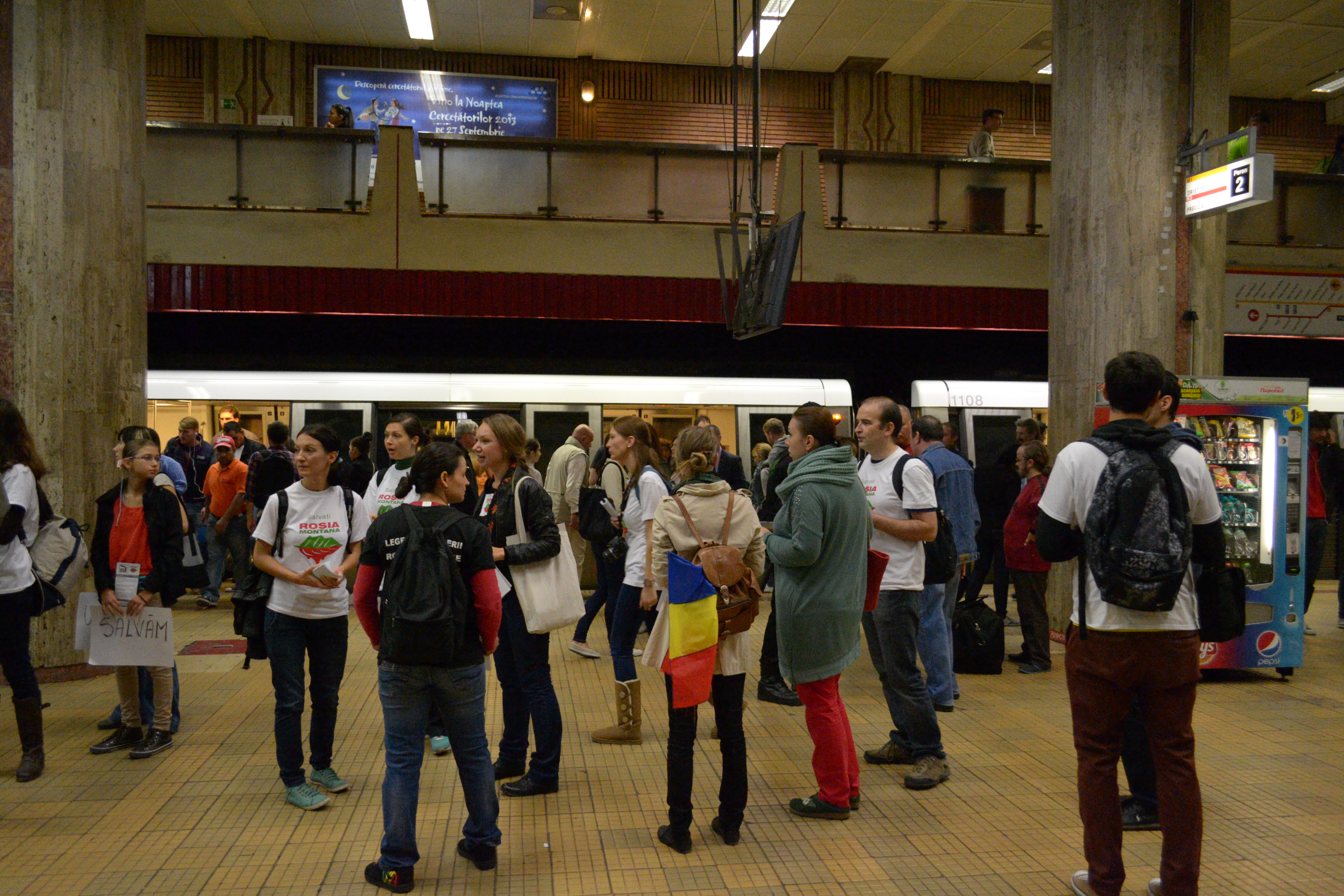 ora 20:24 – marsul pentru salvarea Rosiei Montane a ajuns in Piata Unirii. Prima parte a coloanei de protestatari a intrat deja in piata.