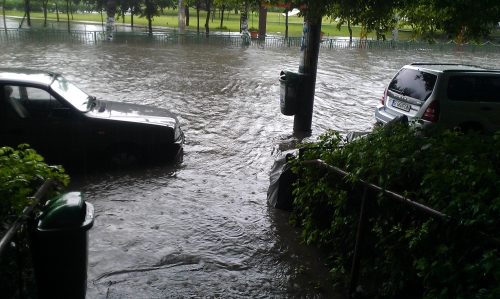 Ploile abundente din timpul zilei de duminică au creat probleme pe mai multe bulevarde din Capitală, o situaţia foarte gravă putând fi întâlnită pe Bulevardul Tineretului. În faţa Palatului Copiilor, pe Bulevardul Tineretului, apa are aproape 50-70 de centrimetri, iar pe străzile lăturalnice, maşinile parcate sunt pur şi simplu sub apă. Sistemul de canalizare nu a mai făcut față șuvoaielor și a refulat.