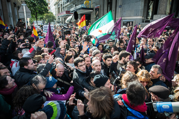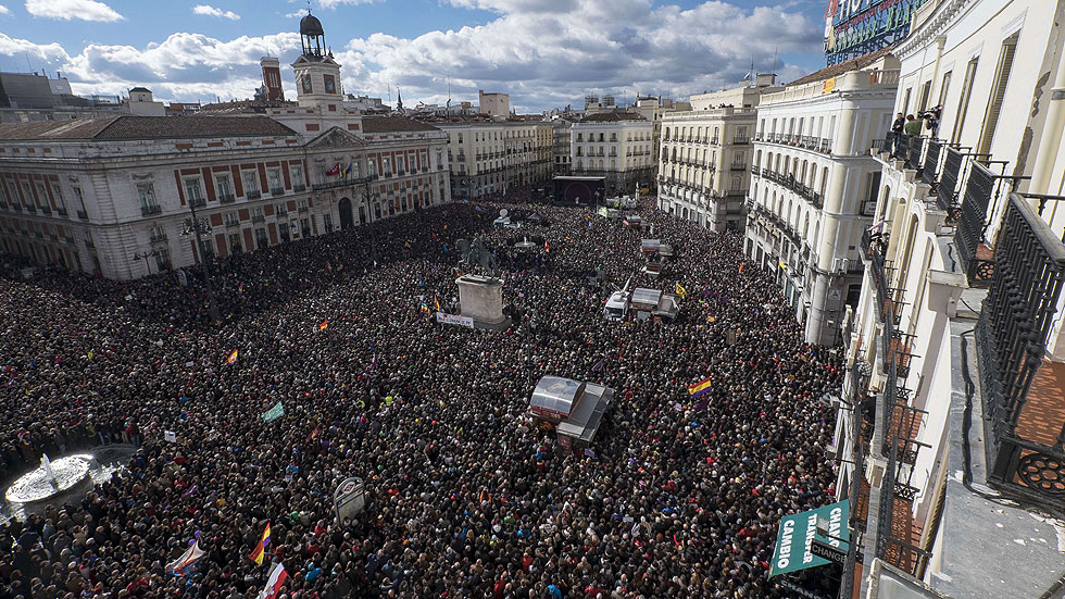 Zeci de mii de oameni au ieşit în stradă, la Madrid, la un miting al partidului Podemos, în traducere „Putem”. Piaţa Puerta del Sol şi împrejurimile au fost pline de susţinătorii formaţiunii care militează, în primul rând, pentru anularea măsurilor de austeritate.