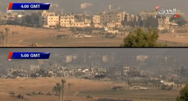 Imaginile din satelit luate la 6 iulie si apoi la 25 iulie asupra unor zone precum Gaza City, Shejaiya, Toffah si Shaaf arata distrugeri similare.
