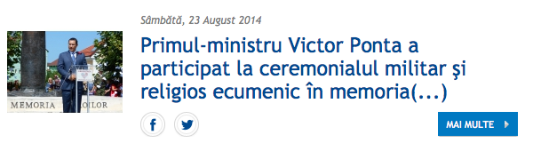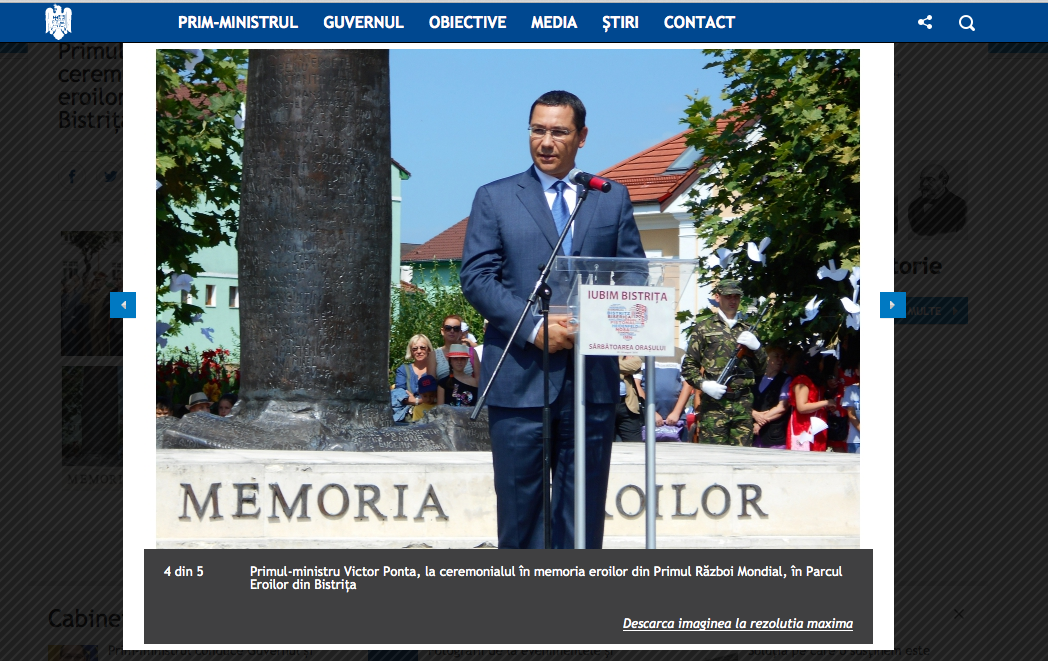 Fotografia buclucașă apare și pe site-ul oficial al Guvernului României, www.gov.ro, cu textul „Primul-ministru Victor Ponta, la ceremonialul în memoria eroilor din Primul Război Mondial, în Parcul Eroilor din Bistrița”.