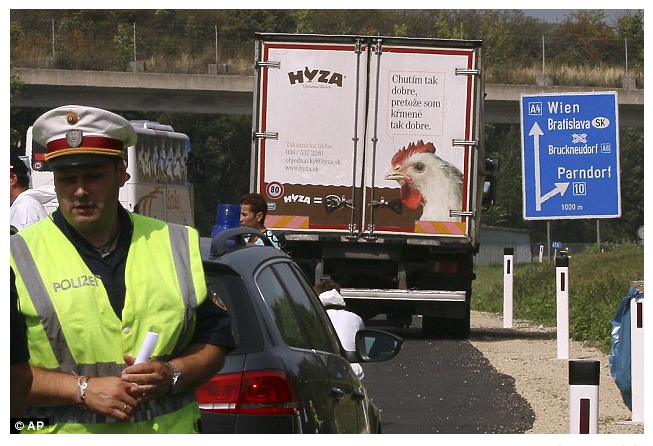 Noi informaţii relevate de poliţia austriacă arată că vehiculul abandonat miercuri şi găsit joi avea uşa din spate deschisă, expunând privirii cadavrele din interior.