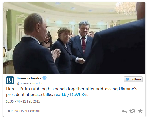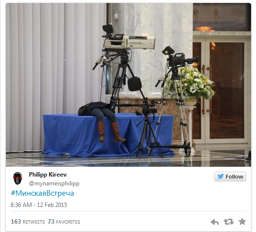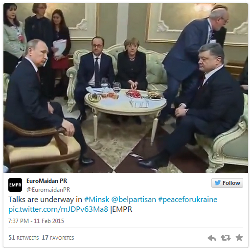 La un moment dat, un jurnalist prezent la palatul din Minsk i-a zarit, printr-o usa intredeschisa, pe Vladimir Putin si Petro Poroshenko avand un schimb aprins de replici, amandoi in picioare.