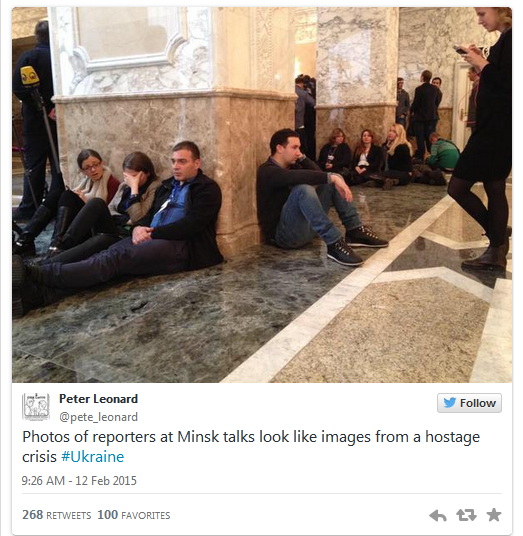 Imaginile surprise de fotoreporterii din delegatiile prezente la Minsk descriu perfect atmosfera tensionata, de asteptare.