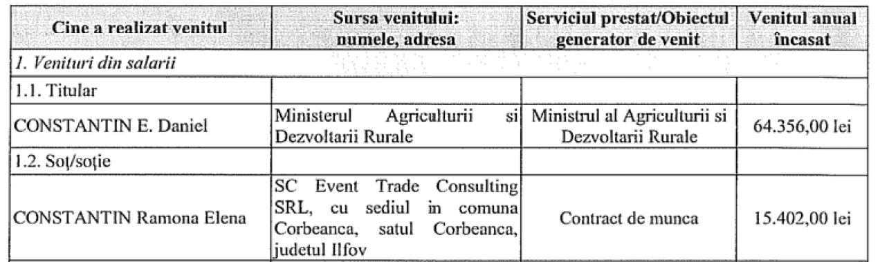 Totuși, acest lucru pare imposibil pentru bugetarul Daniel Constantin. Cu un câștig de aproximativ 15.000 de euro/ anual, din care evident trebuie să mânânce, să își plătească facturile ș.a.m.d, actualul șef al PC nu pare să aibi nici cea mai mică șansă să își achite împrumutul către Voiculescu. Apoi, soția ministrului, deși se desfășoară activități în mediul privat, salariul acestei este unul nu cu mult peste cel minim. Potrivit ultimei declarații de avere depusă de Daniel Constantin, în 2014, soția acestuia a încasat, în anul 2013, aproximativ 3500 de euro. Dacă cumulăm cele două salarii, vedem că soții Constantin nu reușesc să strângă nici măcar 20.000 de euro pe lună. Totuși, au de plătit aproape 295.000 de euro, dintre care 100.000 au dată scadentă la finalul anului 2016.