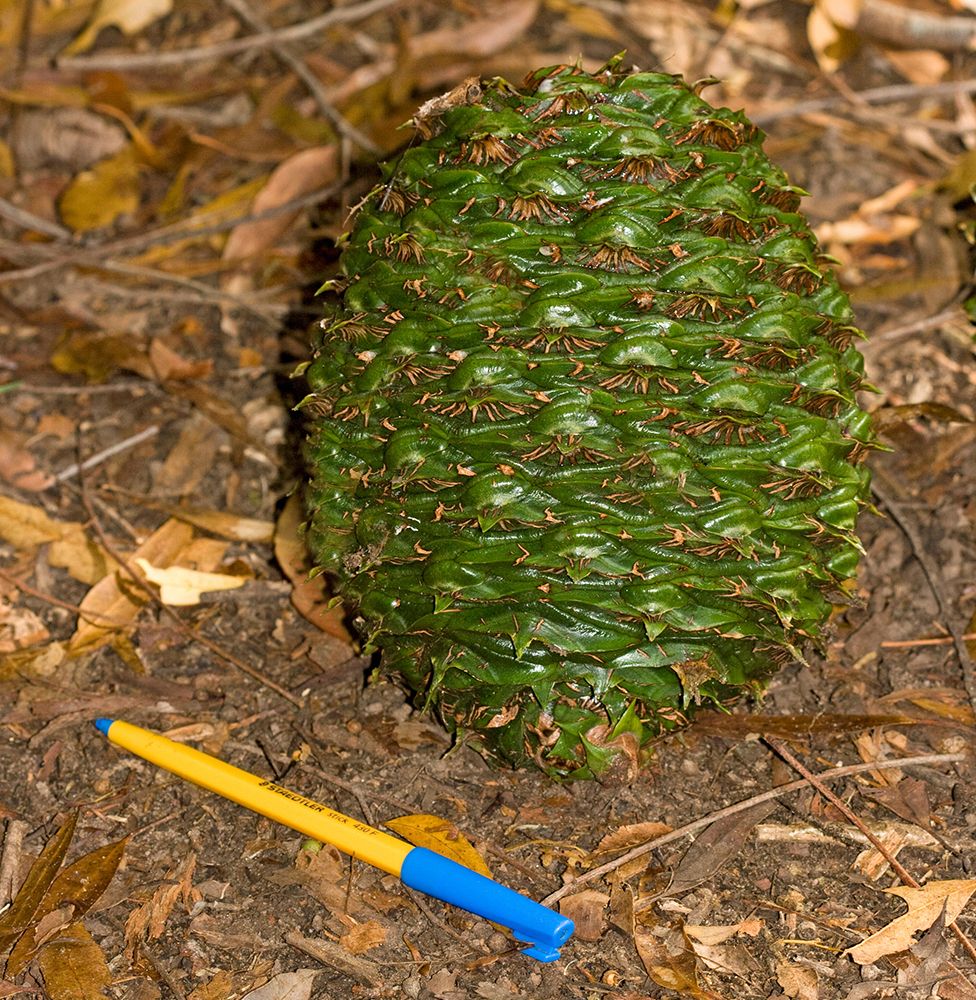 Incidentul s-a petrecut anul trecut, în octombrie. Bărbatul, în vârstă de 50 de ani, a fost lovit în cap de conul de pin de 7 kilograme, din soiul Bunya (foto), și a suferit două operații în urma traumatismului cranian.
