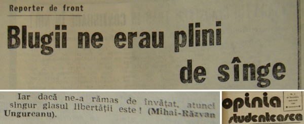Opinia Studenteasca a republicat vineri un reportaj aparut in ziua de 26 decembrie 1989 si scris de Premierul Mihai Razvan Ungureanu, pe vremea cand era student la Iasi si proaspat debutant in jurnalistica, la sectiunea „Reporter de front” din ziar. Articolul este realizat in data de 24 decembrie, zi descrisa de MRU ca fiind „Ajunul celui mai fericit Crăciun, care a devenit, în centrul Transilvaniei, o zi de doliu”.