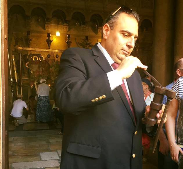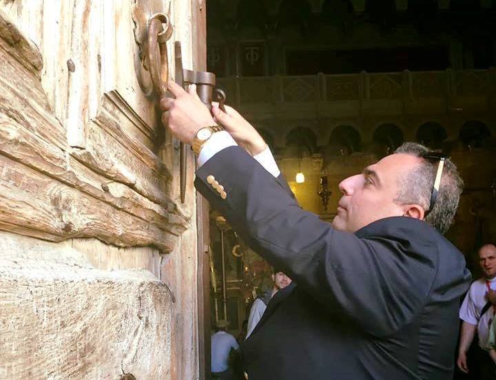 „El e omul care menţine status-quo-ul. Dacă înnebuneşte într-o bună dimineaţă, nu mai intraţi la Sfântul Mormânt. Dar îl trag eu de urechi”, râde poliţistul israelian Johnny Kassabri, ofiţerul care ţine legătura dintre Poliţia din Ierusalim şi comunităţile creştine, în timp ce îi strânge zdravăn mâna palestinianului Adeeb Joudeh, în faţa unei delegaţii de tineri poliţişti germani veniţi să viziteze Sfântul Mormânt. El însuşi membru al Asociaţiei Internaţionale a Poliţiştilor, Adeeb Joudeh este actualul păstrător al cheii şi al sigiliului Bisericii Sfântului Mormânt, rol care s-a transmis în familia sa, din tată în fiu sau din frate în frate, încă din anul 1187, atunci când sultanul Siriei şi Egiptului, Saladin (Salah ad-Din), a cucerit Ierusalimul din mâinile cruciaţilor şi a împăcat toate religiile din vechea cetate sfântă – i-a adus laolaltă pe creştini, musulmani şi evrei.