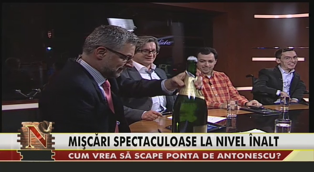 In emisiunea Nasul de luni seara, Radu Moraru a sarbatorit implinirea unui an de la lansarea postului Nasul Tv, deschizand o sticla de sampanie in direct.
