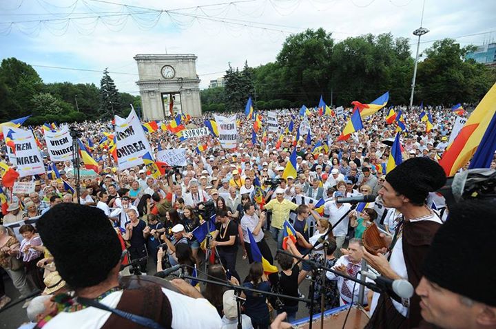UPDATE 14: 20. Mii de persoane au început să se strângă în Piaţa Marii Adunări Naţionale din Chişinău, în jurul scenei pe care se cântă muzică populară şi cântece despre unire. Printre cântăreţi s-au numărat maestrul Tudor Ungureanu şi ansamblul Ştefan-Vodă, Corul de la Lozova, Cristi Aldea-Teodorovici, scrie diez.md.