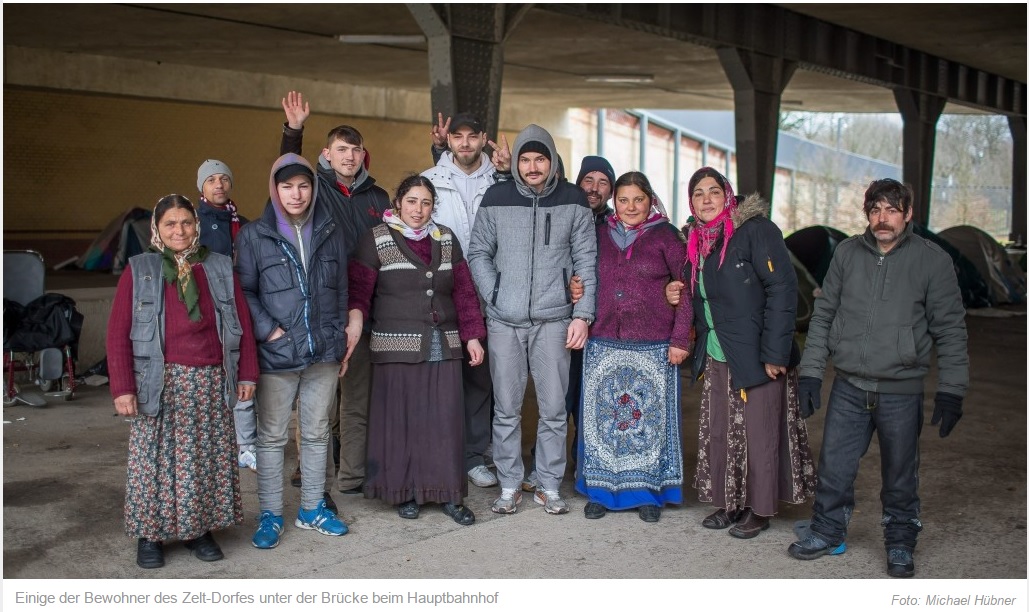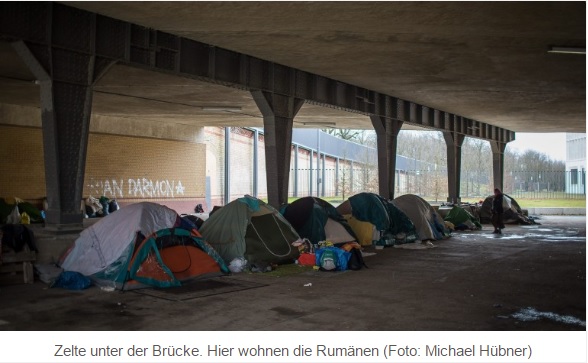 Un reportaj realizat de cotidianul german BZ Berlin arată cum, sub un pod de lângă gara centrală din Berlin, trăiesc aproximativ 100 de romi, veniți din România, în cele 30 de corturi amplasate de ei.
