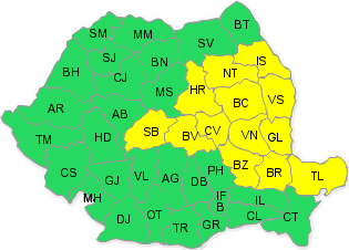 Meteorologii au anuntat, in aceasta dimineata, ca a fost ridicat codul portocaliu de ninsori si viscol, incepand cu ora 09:00. Avertizarea de cod galben ramane in vigoare pana la ora 14:00 pentru judetele Neamt, Iasi, Bacau, Vaslui, Covasna, Harghita, Brasov, Sibiu, Vrancea, Buzau, Braila, Galati si Tulcea.