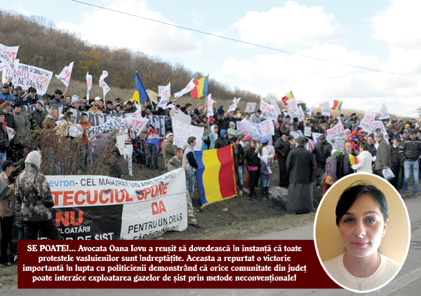SENTINTÃ Vasluienii înregistreazã prima victorie, în lupta lor contra celor care au avizat, în judet, explorarea gazelor de sist! Tribunalul Vaslui, pe fond, a dat câstig de cauzã Consiliului Local (CL) al comunei Al. Vlahutã, în procesul cu Prefectura. Aceastã comunã este una din cele 14 care au emis hotãrâri de interzicere, pe teritoriul lor, a explorãrii gazelor neconventionale. Decizia instantei în acest caz a fost cu atât mai surprinzãtoare, cu cât, anterior, în acelasi context, alte 10 comune pierduserã deja procesul cu Prefectura. Mai mult decât atât, în motivarea sa, judecãtoarea Elena Gabriela Aionitoaie a adus argumente extrem de interesante, ce aratã cã Legea Petrolului (mult invocatã de sustinãtorii Chevron) nu prevede absolut nimic în legãturã cu gazele neconventionale (gazele de sist) si argumenteazã juridic si un alt fapt, deosebit de important: în cazul gazelor de sist, Unitãtile Administrativ-Teritoriale (UAT) au tot dreptul sã decidã dacã permit sau nu explorarea pe teritoriul lor, atâta timp cât – atentie! – în legile actuale ale României, gazele de sist nu sunt mentionate ca fiind “de interes national”. În plus, reprezentanta în proces a comunei Al. Vlahutã, avocata Oana Iovu, a avut un punct de vedere care a contat: “nu existã la dosarul cauzei o expertizã care sã ateste cã, într-adevãr, acolo se aflã hidrocarburi de acest gen, ce obligatoriu, cu forta, împotriva administratiei locale, trebuie exploatate”!