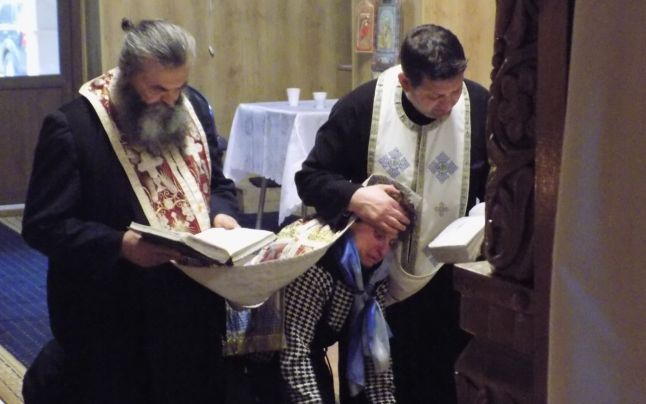 O femeie de 56 de ani din comuna vasluiană Ivăneşti este exorcizată zilele acestea în Bacău, la biserica Inspectoratului Judeţean de Jandarmi. Medicii ieşeni i-au spus că nu are nimic din ceea ce ar putea trata ei, iar, din punct de vedere psihic, ea este considerată sănătoasă. Preotul militar Iulian Ichim, care i-a citit rugăciuni o zi întreagă, consideră că este un caz grav în care Necuratul a pus stăpânire pe femeie.