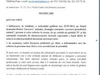 Subsemnatul, Robert Turcescu, având în vedere notificarea transmisă, vă comunic urmatoarele: