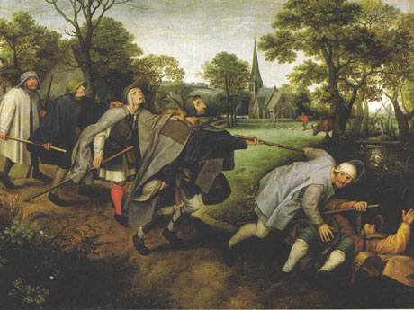 Există un tablou celebru și teribil deopotrivă al lui Pieter Bruegel cel Bătrân, marele pictor al Renașterii flamande: Parabola orbilor. Mai mulți orbi formează un șir ținându-se unul după altul; deja, conducătorul lor, orb și el, s-a prăbușit într-un șanț, iar următorul vine peste el, pe jumătate căzut; următorul, cu un toiag, îl atinge pe al doilea pe umăr spre a se ghida după el și se va rostogoli și el peste confrați, desigur, în puțin timp. Mai urmează trei orbi, dintre care primii doi au, fiecare, mâna stângă întinsă pe umărul drept al celui dinainte, iar ultimul se ghidează după toiagul penultimului. Un lucru mai ales mă frapează în reprezentarea acestei drame inspirate de un verset evanghelic: direcția celor șase orbi este unică – șanțul – , oricât de mult s-ar chinui ei să scape, numai și numai din pricina solidarizării lor; fiindcă, bine echipați cu toiege în dreapta, cum sunt, ei s-ar putea, altminteri, descurca cât de cât, cu condiția să umble singuri; numai că sunt înduioșător de solidari între ei și astfel n-au nicio șansă să evite căderea. Morala: dacă nu putem evita orbirea proprie și nici n-avem călăuză care vede, e preferabil să umblăm singuri decât să ne solidarizăm întru orbire.