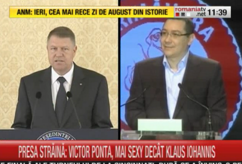 „Victor Ponta este mai sexy decât Klaus Iohannis. O agenție americană mondenă a realizat un top al celor mai atractivi șefi de stat și de guvern în care premierul român ocupă locul 38. Sex-appeal-ul președintelui Iohannis nu i-a impresionat prea tare pe americani, care l-au plasat abia pe locul 70″. În știre difuzată ni se spune că Ponta este o „fire sportivă”, dar și „obișnuit de soție să mănânce sănătos”.