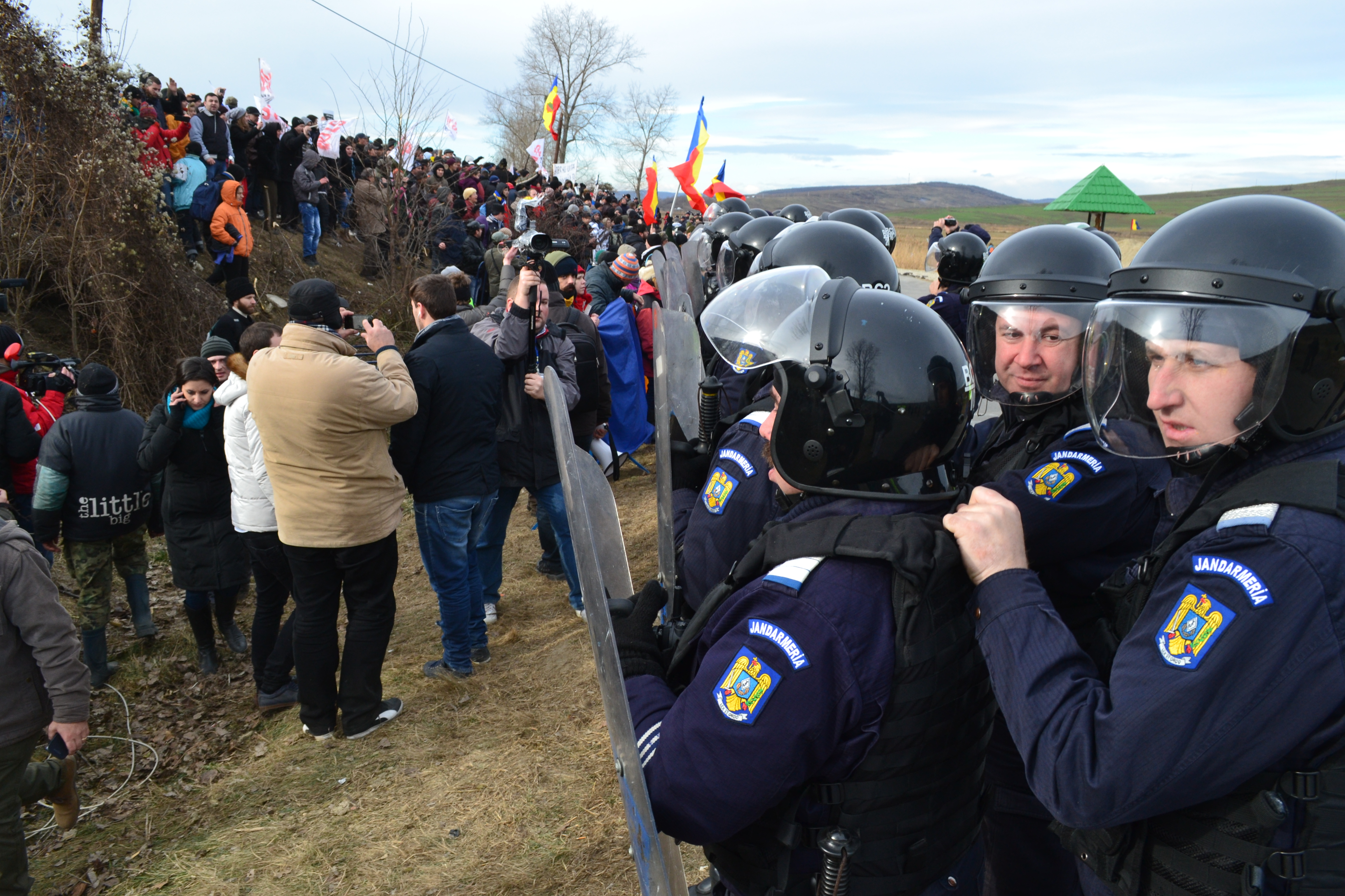 Amira Hameed: „S-a lasat intunericul in Pungesti si au inceput adevaratele abuzuri. Jandarmii ridica toti oamenii de pe strazi, din case, din birt. Atat sateni cat si oraseni. Un satean a fost luat din casa si batut. Vlad loachimescu si Claudiu Craciun au fost batuti. Hetti alearga, pe strazi, ca sa nu fie prinsa de jandarmi. Sa ne intelegem… jandarmeria a iesit in noapte ca sa culeaga din protestatarii ramasi, aia pe care nu au reusit sa ii indubeze pe zi. Nimeni nu este in siguranta, nici macar presa… Raspanditi statusul situatiei… Altfel nimeni nu stie ce ni se intampla. Daca avem telefoanele inchise inseamna ca ne-au luat in duba si ne-au dus la sectie…”.