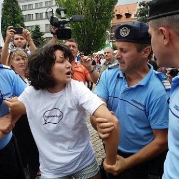 Din fericire, spune Godină, „jandarmii au băgat actoria în dubă, pentru că legea e clară în privinţa unor astfel de manifestaţii, iar când prezenţa unei persoane instigă, acea persoană trebuie îndepărtată, pentru ca lucrurile să nu degenereze, asta pentru protecţia ei în primul rând”.
