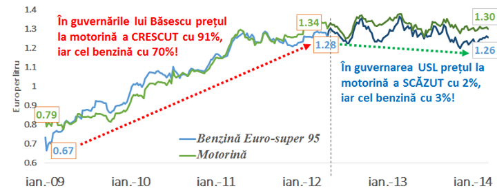 „Iata cum arata situatia reala: pretul benzinei, sub guvernele domnului Basescu, a crescut cu 70%, iar cel al motorinei cu 90%. Presedintele Romaniei, in functie si atunci, dar si acum, a ales sa taca! Il invit pe dl. Basescu, daca tot se arata ingrijorat de pretul la benzina, sa prezinte opiniei publice scrisorile pe care i le-a trimis lui Emil Boc, ca dovada a ingrijorarii sale pentru pretul crescator pe care romanii l-au platit pentru combustibil din 2009 pana in 2012. Altfel, toate demersurile acestuia se inscriu la categoria populism si ipocrizie”, a scris Victor Ponta pe pagina de Facebook.