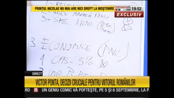 Ca să facă niște demonstrații ca la clasa a V-a și să înțeleeagă toți românii grei de cap, așa cum îi crede premierul, Ponta a fost scos la tablă de jurnaliștii de la România TV. S-a lăudat cu realizările sale din ultimii 3 ani, dar a arătat și cât de frumos scrie.