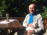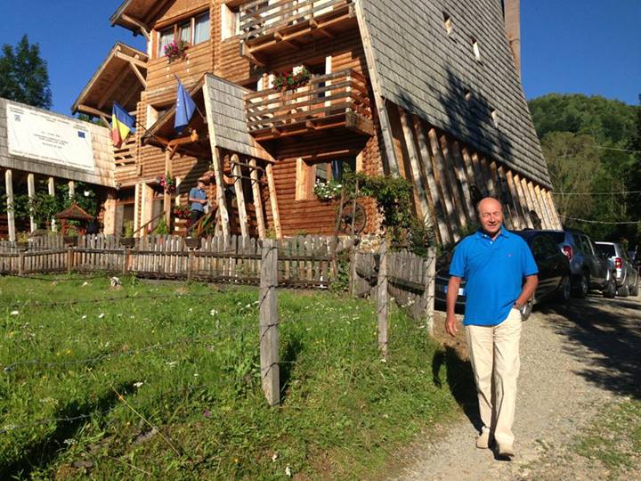 Pisica din fotografie este de fapt una dintre mascotele unei pensiuni din comuna Vidra, situata in Muntii Apuseni, unde Presedintele a petrecut noaptea de sambata spre duminica.