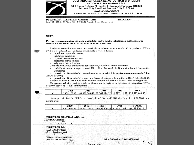 Pe site-ul Companiei Nationale de autostrazi si de drumuri din Romania am gasit dosarele de achizitie pentru lucrarile de intretinere multianuala (activitatea de vara si de iarna) pentru autostrazile A 1 si A 2.