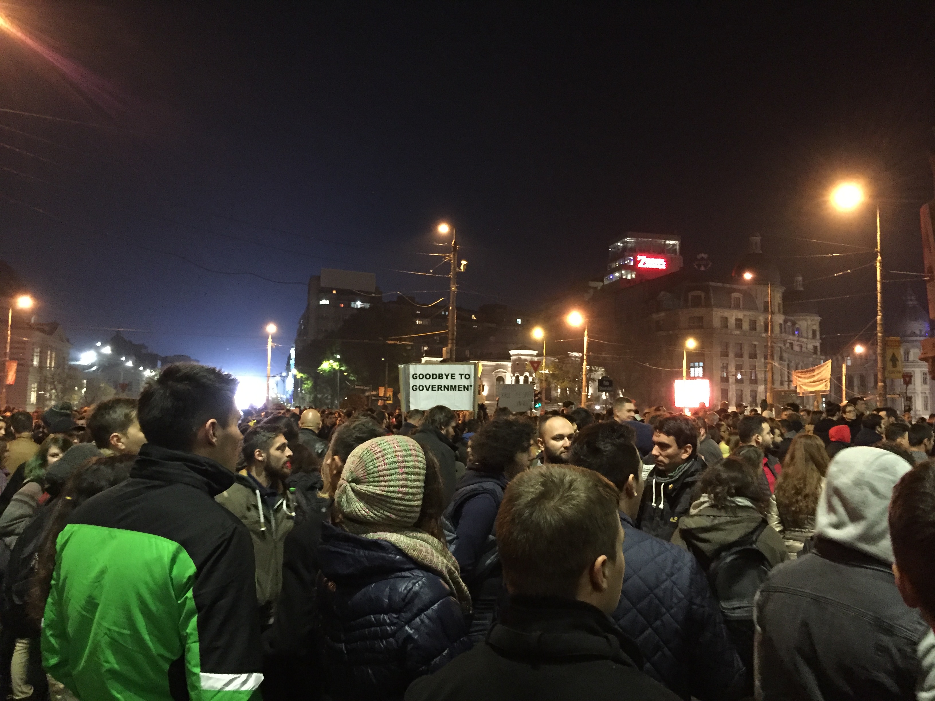 Mai jos, singurul mesaj cu sens de la Universitate din seara asta: “GOODBYE TO GOVERNMENT”. Dar atenție: a picat doar guvernul Ponta, un altul se pregătește și nu cred că va fi compus din îngeri.