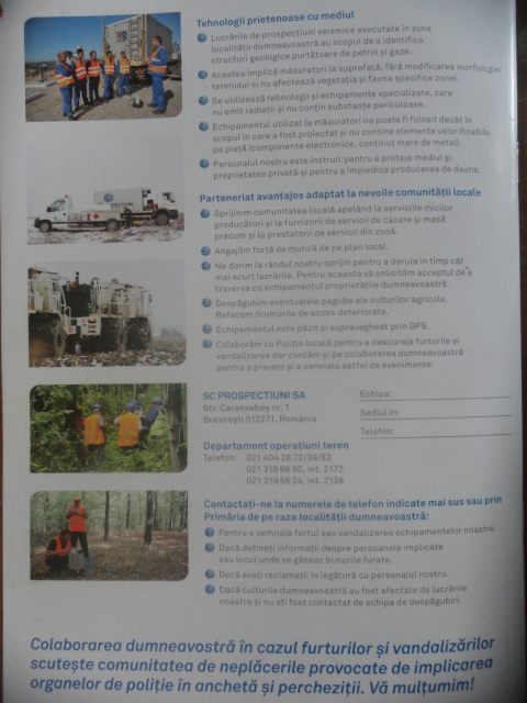 „Prospectiuni S.A. face apel la constiinta copiilor din Mosna pentru a-i prinde, fara implicarea politiei, pe cei care fura sau vandalizeaza cablurile firmei de prospectare.”