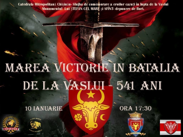 Separatistii moldoveni se pregatesc sa comemoreze 541 de ani de la Marea Victorie de la Batalia de la Vaslui, eveniment care va avea loc la Catedrala Metropolitana din Chisinau. Evenimentul se anunta a fi unul de amploare, fiind invitate mai multe organizatii care doresc reinfiintarea Moldovei Mari, a lui Stefan Cel Mare, informeaza wowbiz.ro.