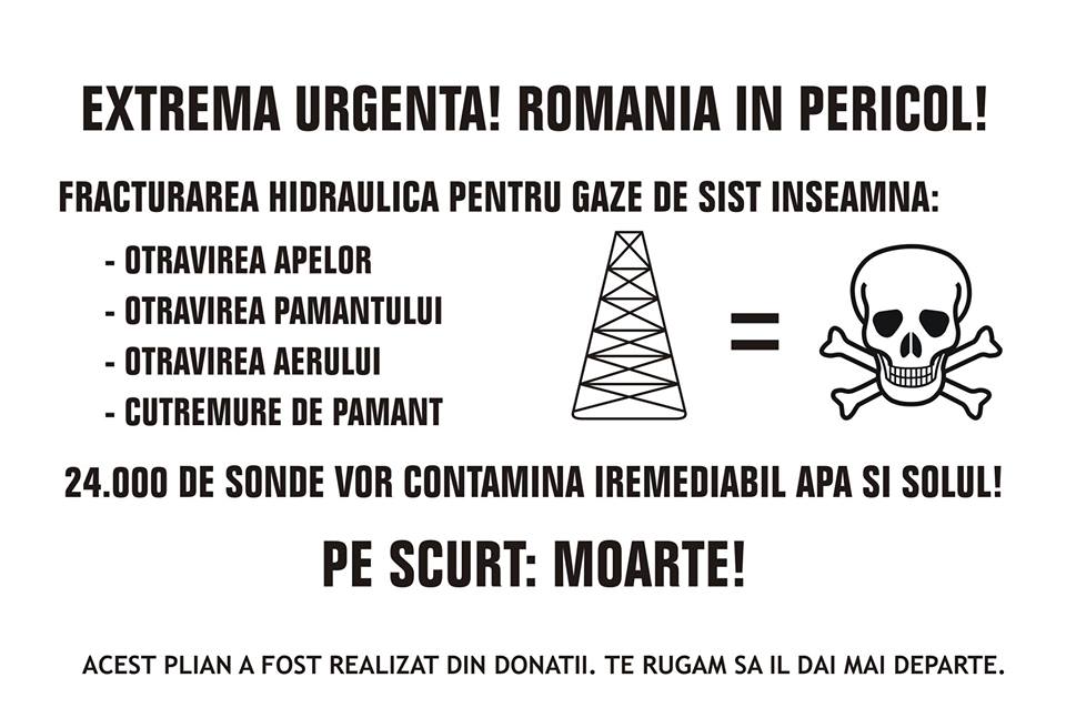 „Pe 22 ianuarie, la Bruxelles va fi „miercurea neagra” a mediului. Comisia Europeana, care promisese initial ca va elebora un cadru de reglementari care sa permita ca fracturarea hidraulica sa se faca “civilizat” (un oxymoron aberant), la presiunea lobby-ului unor tari ca Romania, Marea Britanie, Polonia, Ungaria, a decis sa elaboreze un set de recomandari pentru fracturarea hidraulica, care, insa, nu au nicio forta legislativa. Acest lucru este total impotriva rezultatelor consultarii publice europene din martie 2013, care a evidentiat faptul ca 64% dintre cetateni sunt impotriva fracturarii hidraulice si isi doresc interzicerea ei, nicidecum reglementari care sa permita dezvoltarea acestei industrii.Cu toate acestea, Comisia Europeana, fara niciun mandat de la cetateni consultati, in ciuda opozitiei crescande in cadrul Uniunii Europene si in afara sa fata de fracturarea hidraulica, a cedat lobby-ului industriei si celui al unor politicieni corupti, alegand varianta cea mai confortabila pentru industrie si cea mai periculoasa pentru cetateni si mediu. Varianta unor NONREGLEMENTARI – sub forma unor recomandari…amiabile catre Statele Membre. Practic, in acest mod se lasa la latitudinea statelor membre sa aleaga daca folosesc sau nu aceste recomandari. Este deja clar, dupa toate semnalele de pana acum, ce pozitie vor avea Romania, Marea Britanie, Polonia, de ex. in problema fracturarii hidraulice.” se mai anunta pe pagina oficiala a evenimentului.
