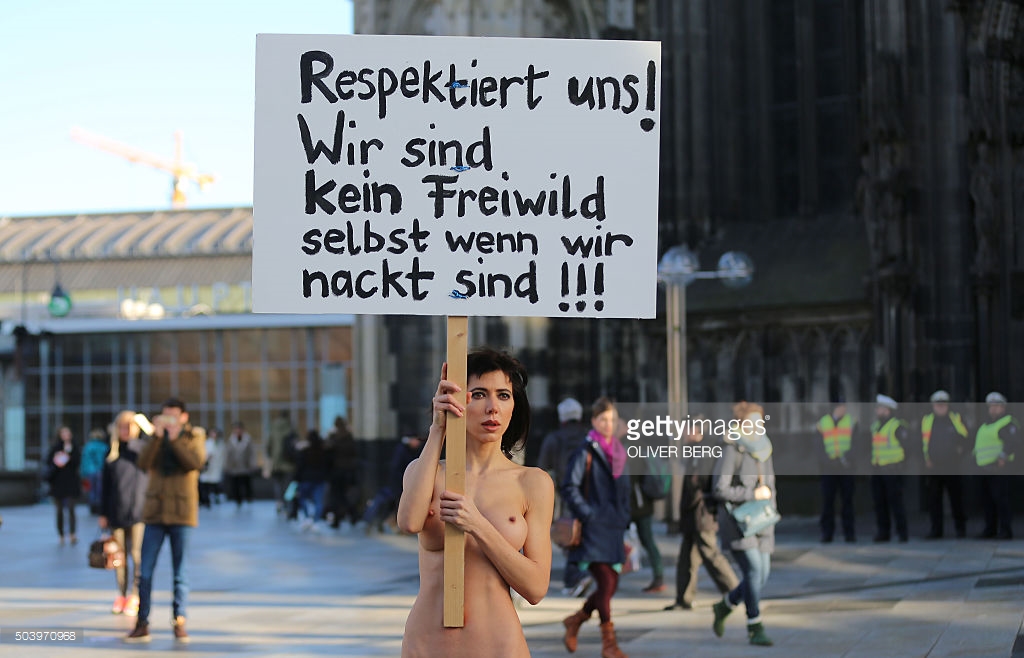 Artista elvețiană Milo Moire a apărut dezbrăcată vineri în fața catedralei din Koln pentru a protesta împotriva agresiunilor sexuale comise împotriva unor femei în marele oraș german, în noaptea de Anul Nou, relatează AFP. Goală în frig, sub privirile trecătorilor și ale polițiștilor, tânăra a purtat o pancartă pe care scria „Respectați-ne! Nu suntem un vânat nici chiar când suntem goale!”, relatează agerpres.ro