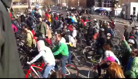 Circa 2000-3000 de biciclisti, potrivit estimarilor Jandarmeriei, s-au adunat in fata Parcului Izvor din Bucuresti pentru a protesta impotriva deciziei Primariei Capitaliei de a face piste de bicicleta pe trotuar. Acestia au plecat in jurul orei 15.00 intr-un mars pe Splaiul Independentie catre Primaria Capitalei.