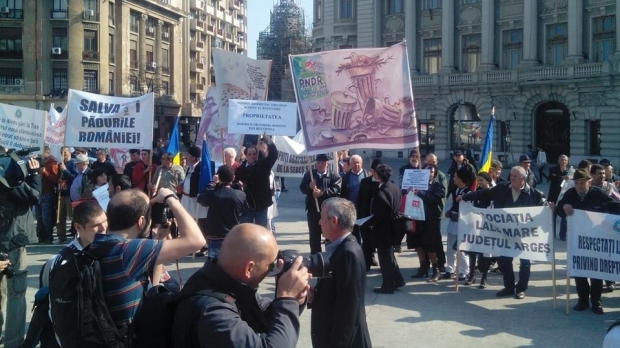 protest_paduriPeste 400 de persoane protesteaza in centrul Capitalei fata de taierile ilegale si de instrainarea padurilor, precum si fata de lipsa alocarii de fonduri europene, de catre Ministerul Agriculturii, pentru sprijinirea proprietarilor de paduri, anunta Mediafax. Protestul a fost initiat de Federatia Proprietarilor de Paduri si Pasuni din Romania – Nostra Silva, fiind sprijinit si de WWF Romania. Paticipantii s-au adunat in jurul orei 14.00 pe Dealul Patrarhiei si au mers in mars pana la Piata Universitatii, fara a perturba circulatia.