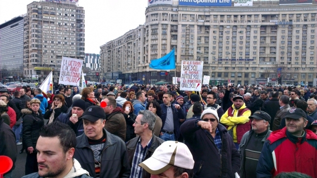 Protestul organizat de Federatia Sindicatelor din Transporturi, Transloc si Servicii Publice „ATU – Romania” a inceput la ora 13:00, in Piata Victoriei in fata sediului Guvernului si vor pleca in mars spre Piata Constitutiei.