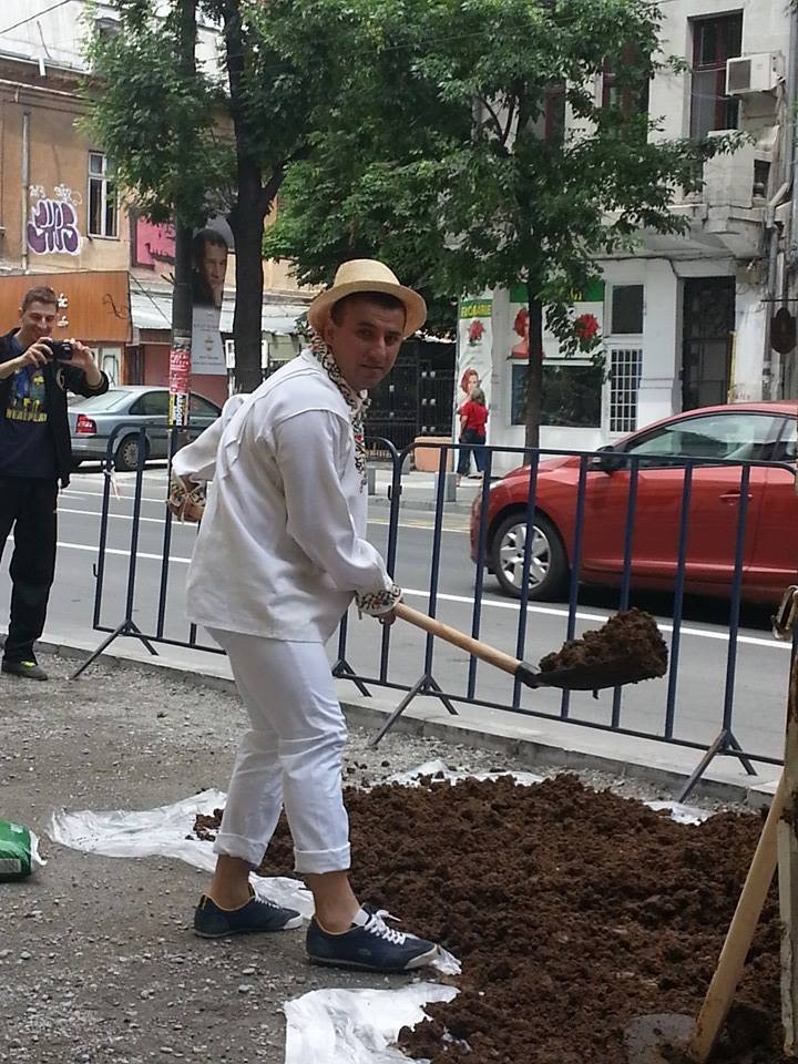 Fost luptator in Legiunea Franceza, in prezent om de afaceri,  Catalin Berenghi protesteaza astfel impotriva institutiilor statului care nu fac nimic pentru a opri jaful din banul public. El spune ca daca nici dupa doua luni autoritatile nu sunt in stare sa repare infrastructura bulevardului atunci mai bine cultiva pe teren produse bio.