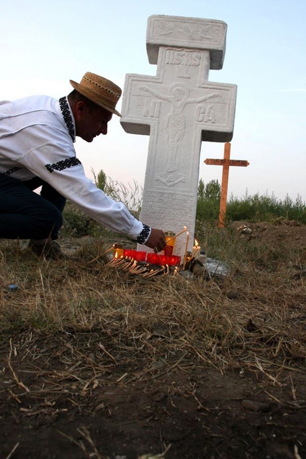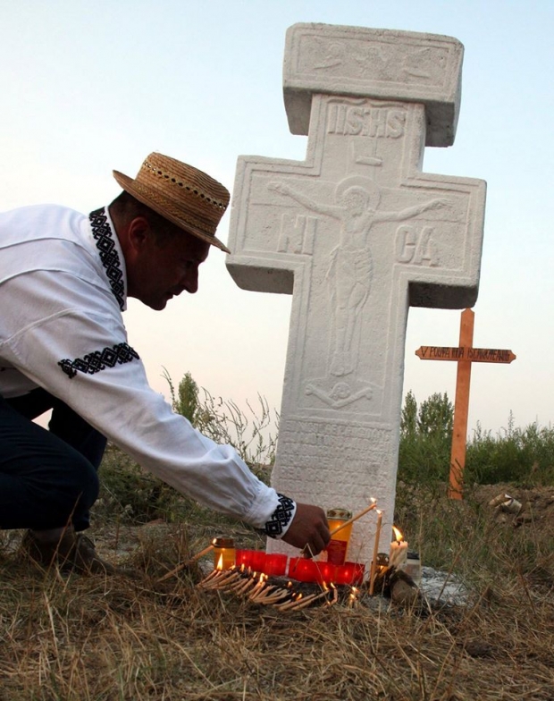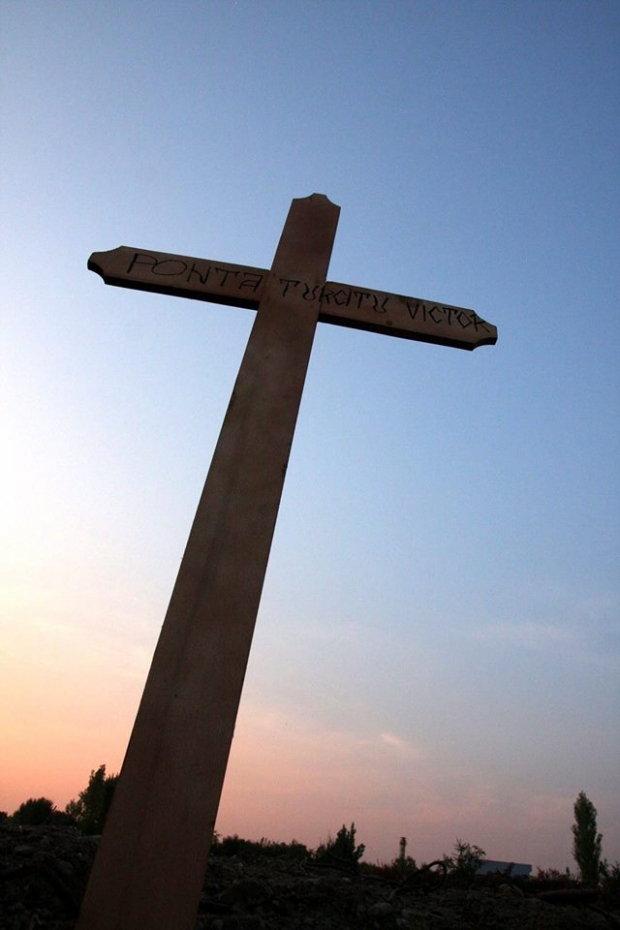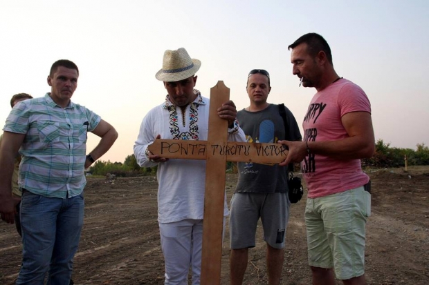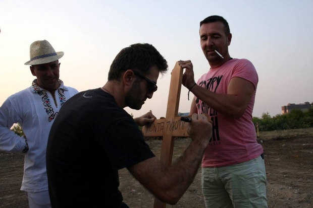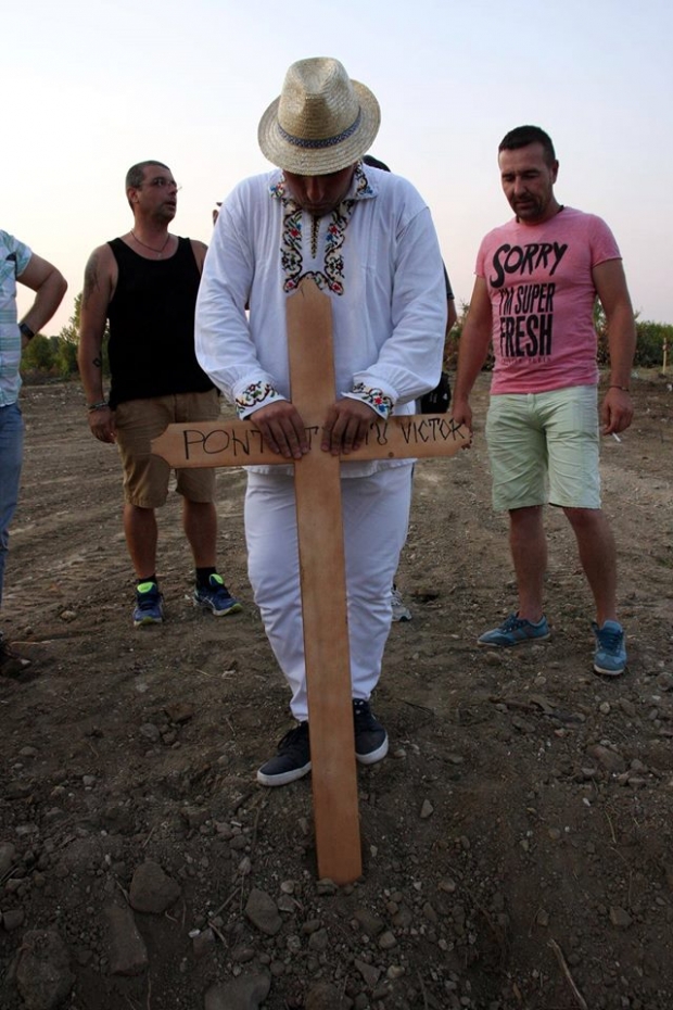 Cei doi bucureşteni, Cătălin Ioan Gornic şi Cătălin Berenghi au pus o cruce de peste 200 de ani vechime, adusă din Moldova, având 2,3 m şi 1,2 tone. Şi nu s-au oprit aici. Supăraţi că Ponta i-a solicitat, miercuri, secretarului de stat pentru Culte, Victor Opaschi, să depună plângere la Poliţie împotriva celor care au îngropat porci, aceştia i-au organizat lui Ponta o înmormântare tocmai pe terenul destinat lăcaşului de cult musulman.