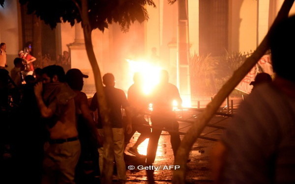 Anterior, posturile de televiziune au aratat protestatari spargand geamurile Congresului si luptandu-se cu politia, dand foc la cauciucuri si distrugand bucati de gard. Ofiteri in echipament antirevolta au tras cu gaze lacrimogene si gloante de cauciuc pentru a-i dispersa.