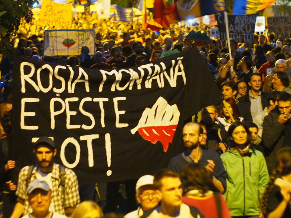 1044606_707865565893481_2004806571_nMii de protestatari fata de exploatarea de la Rosia Montana au ocupat Piata Universitatii, dupa un mars de patru ore, in cea de-a 22-a zi de proteste fata de proiectul minier.