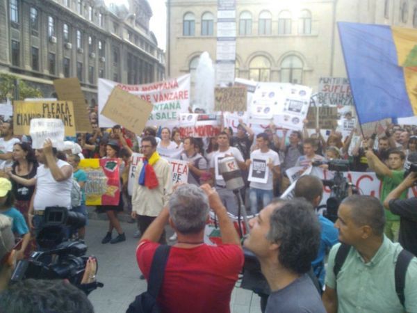 Protestele impotriva exploatarii cu cianuri de la Rosia Montana continua. In urmatoarele trei zile sunt anuntate manifestatii in capitala in alte 45 de orase din tara si strainatate. Incepand din 1 septembrie au avut loc proteste in toata tara dar si in mai multe orase ale lumii. Manifestantii au anuntat ca nu vor opri protestele pana cand proiectul RMGC nu va fi ingropat definitiv.