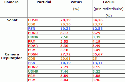 FDSN a ajuns pe la 35% și a făcut un guvern minoritar, susținut în Parlament de patru partide-balama: cele trei pomenite și PUNR, care crescuse pe baza cultivării atmosferei antimaghiare în Transilvania.