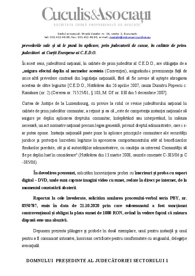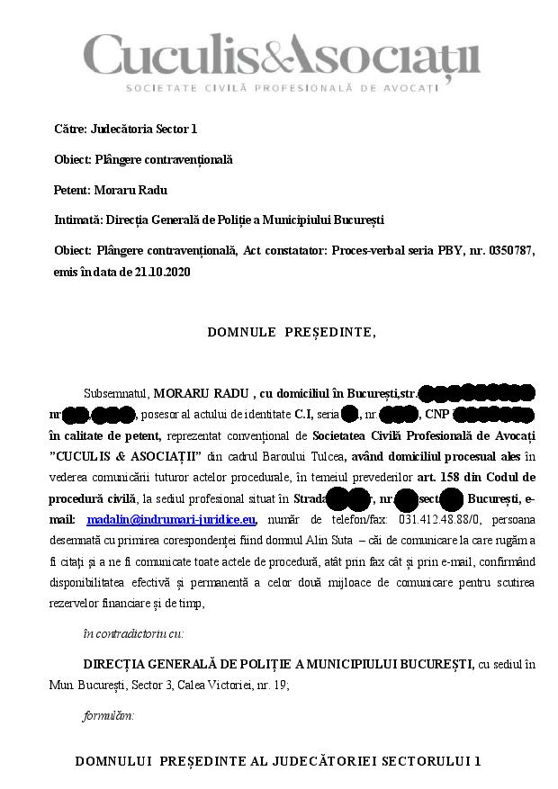 Contestația depusă de Asociatia CUCULIS si asociații , avocatii postului Nasul Tv au depus contestatia impotriva amenzilor nelegale cu privire la purtarea măștilor in spațiile publice deschise!