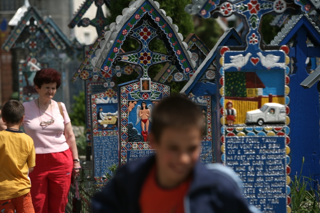 O încruntare adâncă taie hotar prin Cimitirul Vesel din Săpânţa. De o parte e unul dintre meşterii cioplitori, care a înregistrat la OSIM celebra cruce de Săpânţa şi a devenit proprietarul mărcii; de cealaltă parte, ceilalţi meşteri din sat, care nu mai au voie sa facă şi ei cruci.