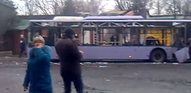 La 14 ianuarie, un bombardament împotriva unui baraj al armatei ucrainene în apropiere de Volnovaha (estul Ucrainei) a lovit un alt autobuz, provocând 12 morţi, toţi civili. Kievul şi rebelii s-au acuzat reciproc că ar fi la originea bombardamentului.