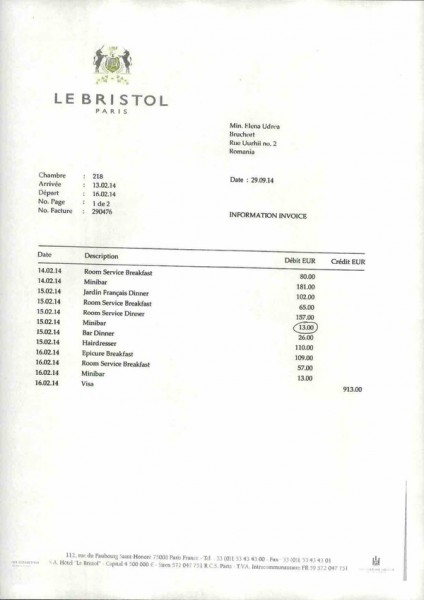 Iată facturile care au apărut pe un site care a fost şters ulterior.