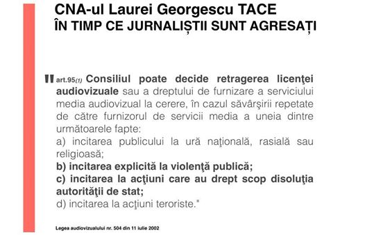 „De ani de zile spun in CNA ca agresivitatea limbajului duce la agresivitate fizica. Am fost luata peste picior, cel mai adesea. Mi s-a spus ca nu inteleg democratia (Christian Mititelu) sau ca sunt impotriva libertatii de exprimare (Radu Calin Cristea). Antena 3 difuzeaza zilnic emisiuni cu limbaj agresiv. Tinte sunt inclusiv jurnalisti de la Realitatea, B1, Evenimentul zilei, Gandul, Hotnews s.a. Mircea Badea ameninta in mod evident persoane precis identificabile, descriind agresiunile la eventuale intalniri cu acestea. Ce reactie sa aiba telespectatorii Antenei 3 atunci cand chiar intalnesc jurnalistii impotriva carora aud zilnic amenintari? Pun in practica indemnurile realizatorilor tv pe care-i urmaresc. Iata de ce eu cred ca CNA este complice la agresiunile petrecute la „plimbarea” Antenei 3 fata de jurnalisti. Prin pasivitate”, scrie Narcisa Iorga pe pagina sa de Facebook.