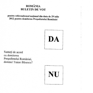 2. Desi il sustin pe Base si nu as dori niciodata sa nu mai fie presedinte, l-as propune PRESEDINTE PE VIATA ptr Romania, ptr ca a dovedit ca INTERESUL NATIONAL primeaza in tot ceea ce a inteprins, consider ca tinta sa de castigare a referendumului este ptr MOMENT o UTOPIE. Marea majoritate a romanilor sunt LIMITATI fie financiar (inclusiv si prea hapsani….), fie mintal (inclusiv cei care nu vor decat sa li se spuna ce-ar vrea sa auda, nu tot ca e CRIZA, CRIZA, CRIZA…), paleta acestora cuprinzand de la ASISTATI, la pensionari fie pe caz de boala, fie anticipat, fie de drept si pana la cei avizi fie de a fi declarati si cu handicap cat mai bine platit, fie de a mai putea fura in continuare, refuzand orice control informatic NATIONAL INTEGRAT. PUTINI sunt curiosi de UE, STANDARDE in educatie, sanatate si restul institutiilor din Romania !!!! Ei doar vor sa li se dea, STATUL sa le tot dea cat mai mult, ptr a continua sa stea FARA GRIJI inclusiv legate de impozit, asigurari de sanatate etc… in acte sunt cu ajutor social, cu handicap sau pensionati pe caz de, te miri ce boala, dar, in realitate, ei lucreaza la negru… ACEASTA PARTE a POPORULUI ROMAN NU ESTE deloc NEGLIJABILA !!!! Prin prezenta noastra, a celor care tinem la niste standarde, nu vom reusi decat sa va asiguram cvorumul de suspendare….. Eu consider ca POPORUL DE BUNA CREDINTA ar trebui sa REFUZE sa fie IMPLICAT in acest PUCI, soldat cu SUSPENAREA presedintelui FARA MOTIV CONTITUTIONAL !!! EU, UNA, REFUZ sa fiu partasa la o fapta ILEGALA !!! Sa ramana in ISTORIE ca : REFUZUL POPORULUI de a fi PARTAS la acte ANTI-ROMANIA !!!!!