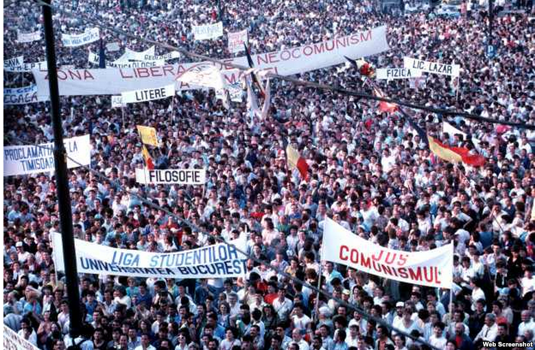 Miile de oameni care se perindau zilnic prin Piață voiau parcă să-și ia revanșa pentru capitularea societății civile în cele peste patru decenii de comunism. Balconul Universității se transformase într-un fel de tribună democratică, de unde luau cuvântul, pe lângă studenți și oameni obișnuiți, personalități proeminente ale vieții culturale. Au apărut nenumărate lozinci și sloganuri de o inventivitate cuceritoare.