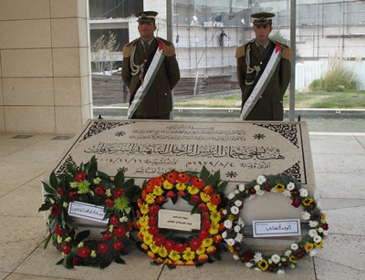 Sosirea la Ramallah coincide cu miezul zilei. Sunt peste 20 de grade. Ni se ofera apa, sucuri si o cafea minunata, un soi de elixir care ai dori sa nu se termine vreodata. Spre deosebire de paranoia proprie dezvoltata in Ierusalim aflam ca aici oamenii sunt pasnici si primitori. Orasul se ridica pe ruinele fantomatice ale fostelor comunitati bombardate. Ajungem la mormantul lui Yasser Arafat, marele parinte al palestinienilor, amplasat in complexul prezidential, unde ni se spune ca ansamblul monumental nu este inca finisat. Catafalcul este strajuit de doi soldati imbracati in uniforma ceremoniala. Ni se explica: “Este un mormant portabil pentru ca va veni o zi cand ne vom reintoarce la Ierusalim, iar parintele nostru isi va ocupa adevaratul loc pentru inhumare, asa cum si-a dorit”. Vis-a-vis exista si un obelisc care are in varf un laser. In ciuda banuielilor ca poate fi folosit in scop militar, explicatia e mult mai simpla: “Ne arata calea spre Ierusalim ”.