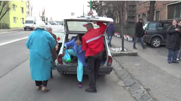 Imagini incredibile suprinse de jurnalișii brașoveni! Dintr-mașină din anii ’80 (Dacie Papuc) care transportă persoane aflat în îngrijire medicală au coborât TREI pacienți. Primul de pe bancheta din spate și doi din locul destinat tărgii (practic au împărțit aceeași targă). În total, în mașină, se aflau 5 persoane – șoferul, o asistentă și cei trei pacienți, notează brasovultau.ro